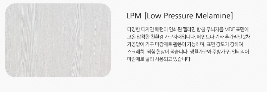 오래오래 사용해도 자연스럽고 깔끔한 가구가 될 수 있도록 스크래치나 찍힘에 강한 LPM 마감으로 마무리!!
